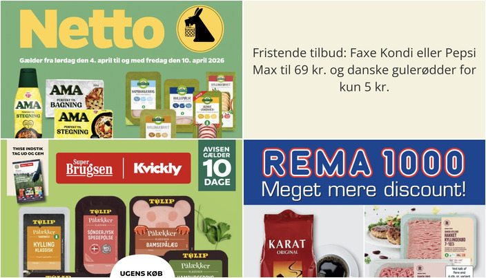 Netto tilbyder en hel ramme med 24 x 33 cl Faxe Kondi eller Pepsi Max sodavand til kun 69 kr. Husk, at du kan købe op til 6 rammer pr. variant pr. kunde pr. dag. Tilbuddet gælder fra lørdag den 4. april til fredag den 10. april 2026.
