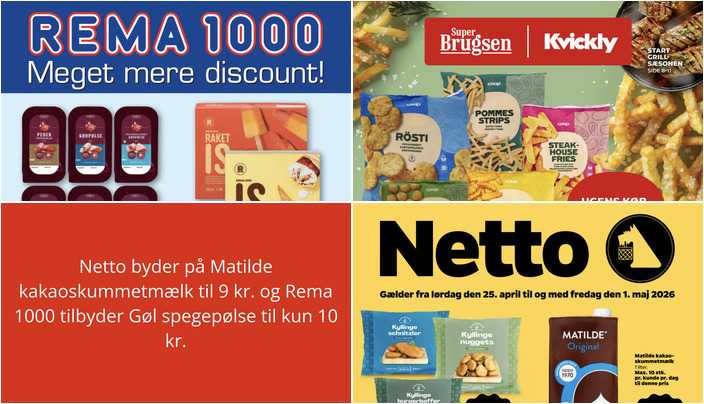 Netto tilbyder Matilde kakaoskummetmælk til en skarp pris på kun 9 kr. for 1 liter. Du kan købe op til 10 stk. pr. kunde pr. dag. Tilbuddet gælder fra lørdag den 25. april til fredag den 1. maj.